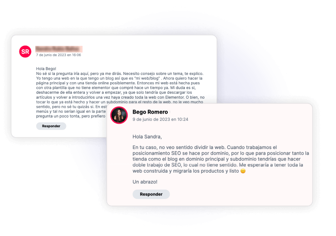 Antes no era capaz de diseñar una página web y con el curso de Bego ya he diseñado mi propia web profesional.