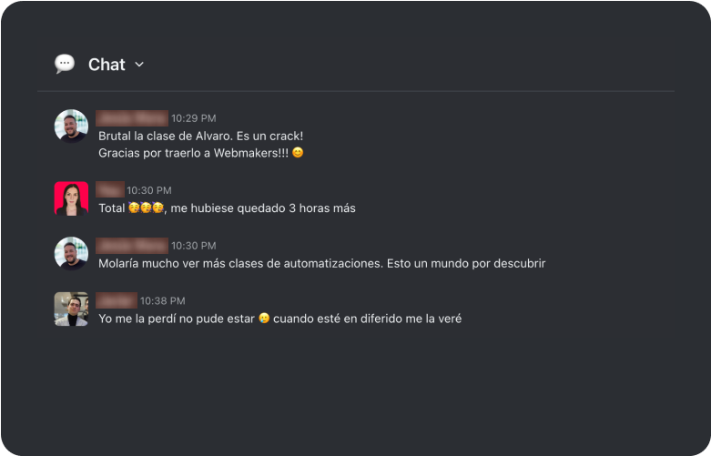 Se desbloquean los primeros módulos y nos vemos en las sesiones en directo. Tendrás soporte personalizado, acceso al chat privado y una ruta paso a paso para lanzar tu negocio digital.