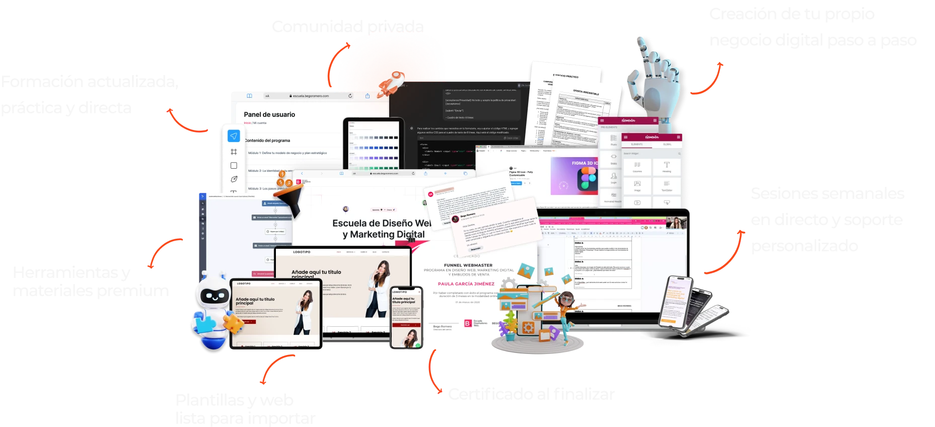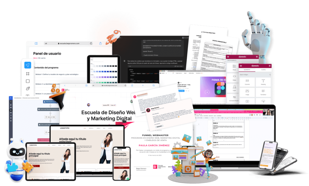 Aunque no tengas conocimientos técnicos ni experiencia previa, aprenderás lo esencial del diseño web, marketing digital y embudos de venta para aplicar a tu propio negocio, idea o marca personal.